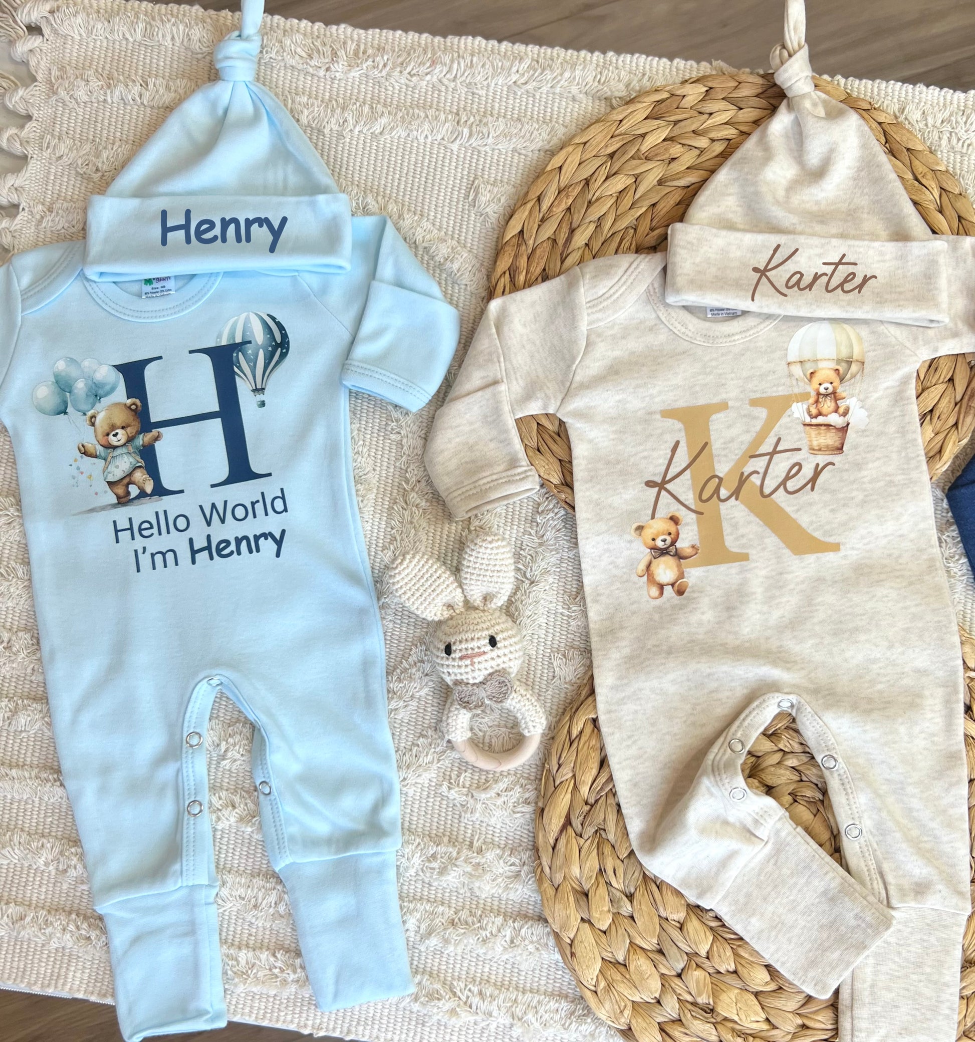 -You can choose to purchase the romper/sleeper only or you can choose to purchase a set with a matching hat with baby's first name.